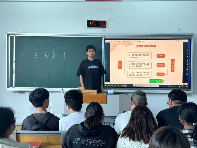 胡佳焱、舒景悦两位同学以召开班级宣讲会的形式倡导同学们要深入学习贯彻习近平法治思想,要时刻以法律为行动指南和标尺,做到行有所止,各项行为举措都要在纪律的边界内运行,守牢法律红线和政策高压线。在具体工作和日常生活中,我们应该崇尚高标准和严要求,从小事做起,从小节做起,给自己上一道“紧箍咒”,不越“雷池半步”,同时鼓励班级同学争做班级普法宣传员。