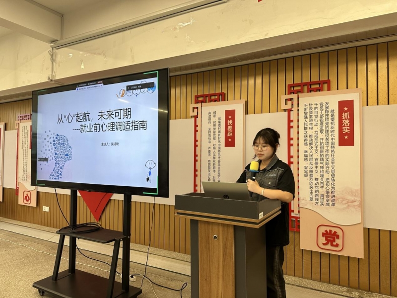 讲座主要围绕自我认知、树立信心、直面挑战三个方面开展,吴诗琦首先指导同学们利用MBTI测试自己的性格,让同学们对自己的性格有一个大概的认知;她告诉大家面对未来的不确定性,焦虑、迷茫、烦躁等负面情绪的存在是正常的,但要尝试将负面情绪转化为精神力量,做情绪的主人,要坚信前途是光明美好的;最后,吴诗琦希望毕业生们能够克服焦虑,勇于尝试,直面挑战,并祝愿毕业生都能找到适合自己的工作。