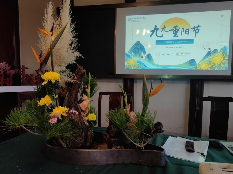 为了进一步丰富老年人的生活,XCSport沈冰洁老师为老年人们带来了一堂居家插花演示课,她详细讲解插花的基本技巧,指导老人们如何选材和制作插花,并为大家讲解了插花的种类和插花过程中需要注意的问题。沈老师巧手翻飞,色彩斑斓的花朵在老师的手中仿佛被赋予了生命,引得现场老人和志愿者们阵阵赞叹。随后,思政部徐猛香老师以中华传统文化作为导入,为老人们讲述重阳节的由来,她以生动的语言和丰富的历史故事,将重阳节的深厚文化底蕴展现深入浅出的讲解出来。进入精彩的葫芦文化展示环节,常州葫芦烙画非遗传承人范永恒教授带领志愿者们和现场老人们一起体验制作。最后,在温馨的氛围中,志愿者们为大家发放了重阳糕,一份份香甜的重阳糕,承载着对老人们的深深祝福和关爱。