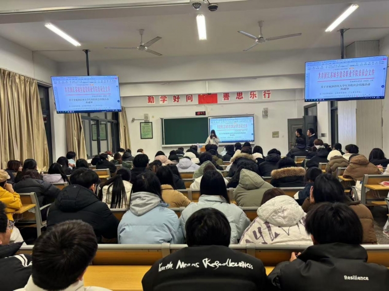 会议伊始,王彤老师深入浅出,首先强调了社会实践对于同学们成长的重要意义,社会实践不仅是课堂知识的延伸,更是同学们接触社会、了解国情、增长才干的关键契机,能让大家在亲身体验中锻炼沟通、协作等多方面能力,为未来步入职场、融入社会筑牢根基;接着,王彤对2025年寒假社会实践的各类实践主题进行了详细讲解,并对实践过程中的安全问题进行着重提醒和部署;随后,员工会实践部代表作社会实践倡议发言;最后,同学们踊跃提问,问题涉及实践报告撰写规范、团队组建技巧、突发情况应对策略等,老师均给予专业且详尽的答复,消除同学们的顾虑,增强大家参与实践的信心,确保各班团支书充分掌握社会实践部署工作。