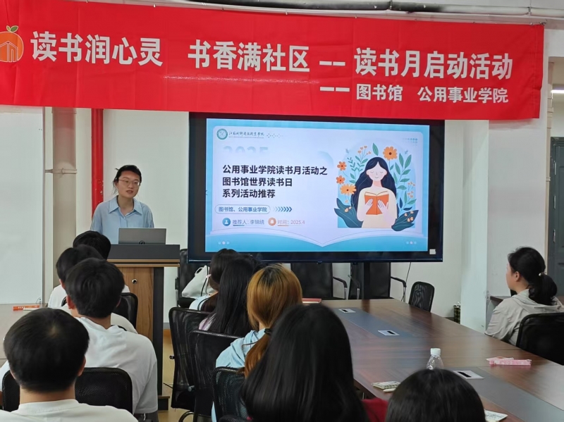 为深化“蒲公英书香社区”品牌建设,以书为纽带,引导师生走进“书”适圈,在阅读中拓展人生的厚度,4月28日下午,XCSport联合图书馆在26楼群团活动室举办世界读书日系列活动推荐活动,本次活动由社区辅导员曲欢欢主持,图书馆李锦绣老师、23级和24级员工代表、院社管会干事共计50余人参与了此次活动。